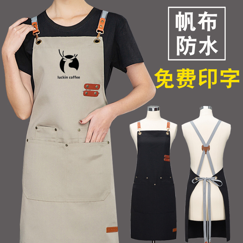キャンバスエプロンカスタムロゴ印字韓国版ミルクティーコーヒーフルーツ花屋飲食専用防水作業服女性