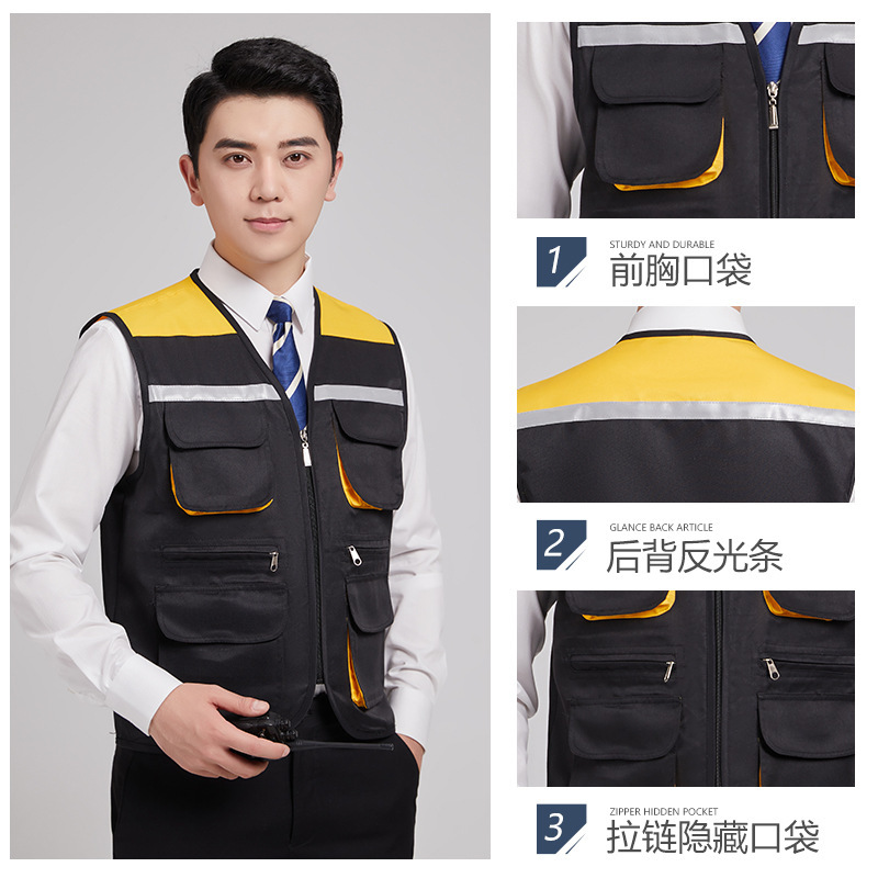 工事馬甲カスタム工装作業服記者監督電気技師内装多ポケット反射馬クリップ印字ロゴ