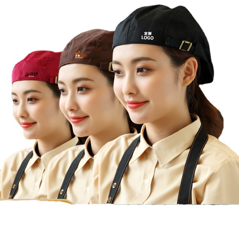 広告帽子ベレー帽カスタムコーヒーショップ西洋レストランウェイター作業帽子男性と女性のためのフロントハットチームカスタムロゴ