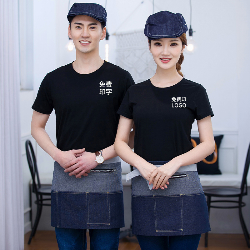 ウェイターケータリング作業服半袖女性と男性の夏ミルクティーホットプレートレストランレストランラウンドネックカスタムTシャツクロスボーダー