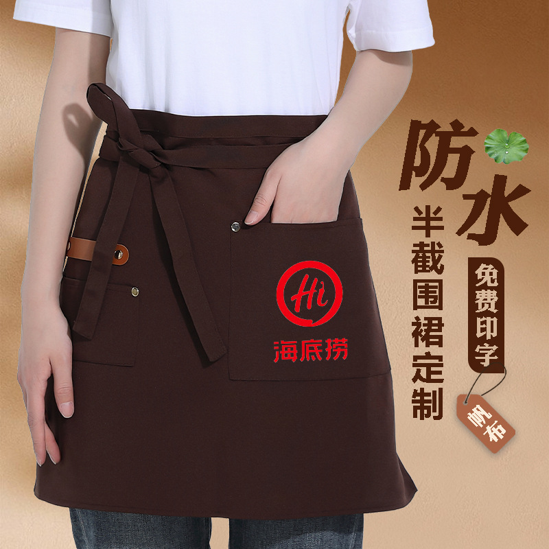 ケータリング用防水ウェイター小半身カスタムエプロン、プリントロゴ入りシェフ大半身作業服エプロン