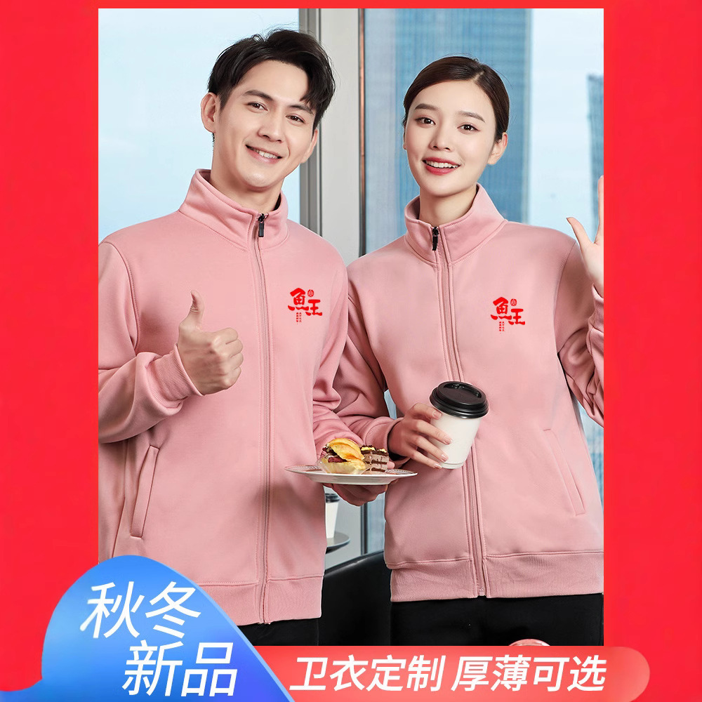 スウェットシャツ作業服カスタム秋冬厚みのある男性ケータリングレストランミルクティーホットプレートレストランサービススタッフユニフォーム女性プリントロゴ