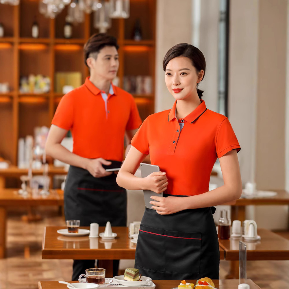 ホテルレストランウェイター作業服Tシャツ半袖ホテル鍋バーベキューショップ作業服カスタムロゴ夏