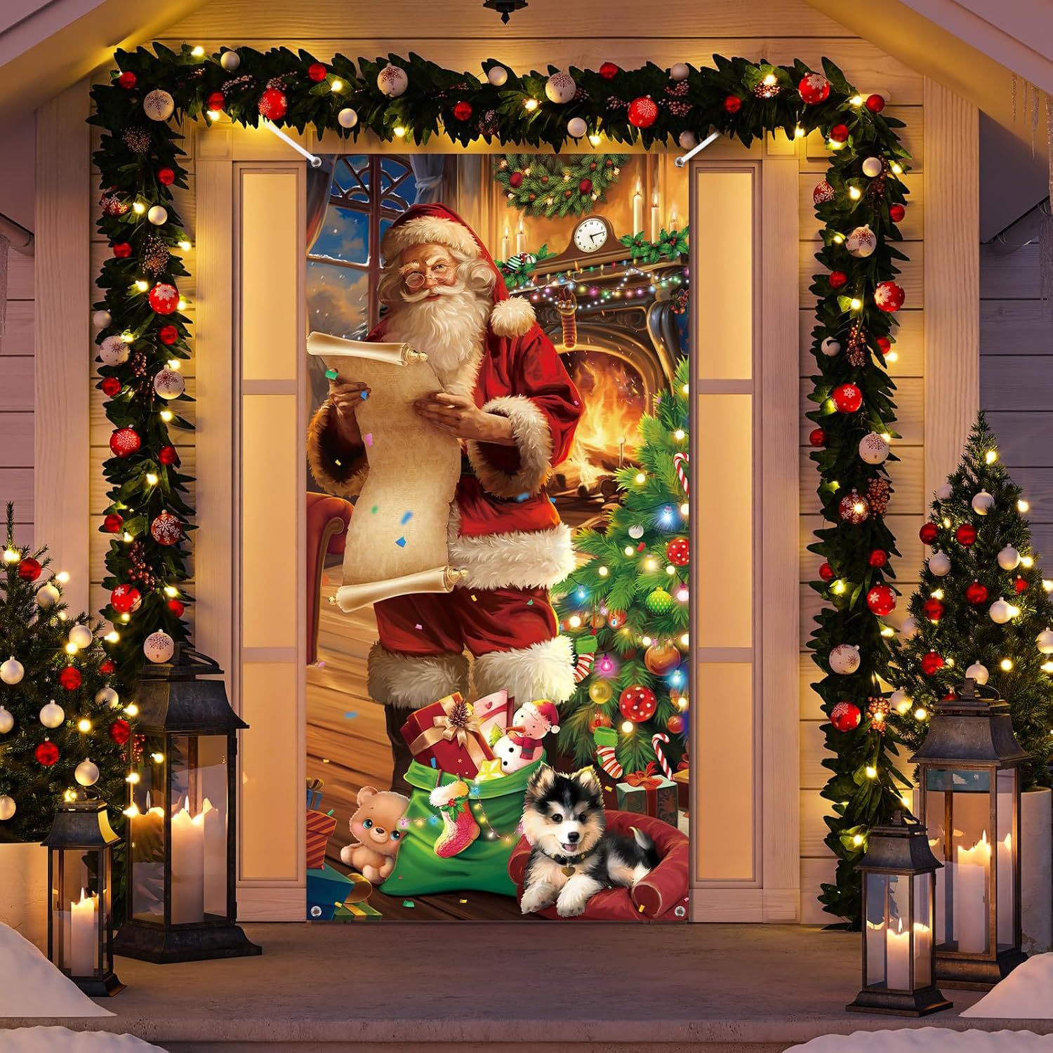 アマゾンの新しいクリスマスのドアの幅のパーティーのドアの旗のポリエステルのカーテンのクリスマスの旗の装飾の背景