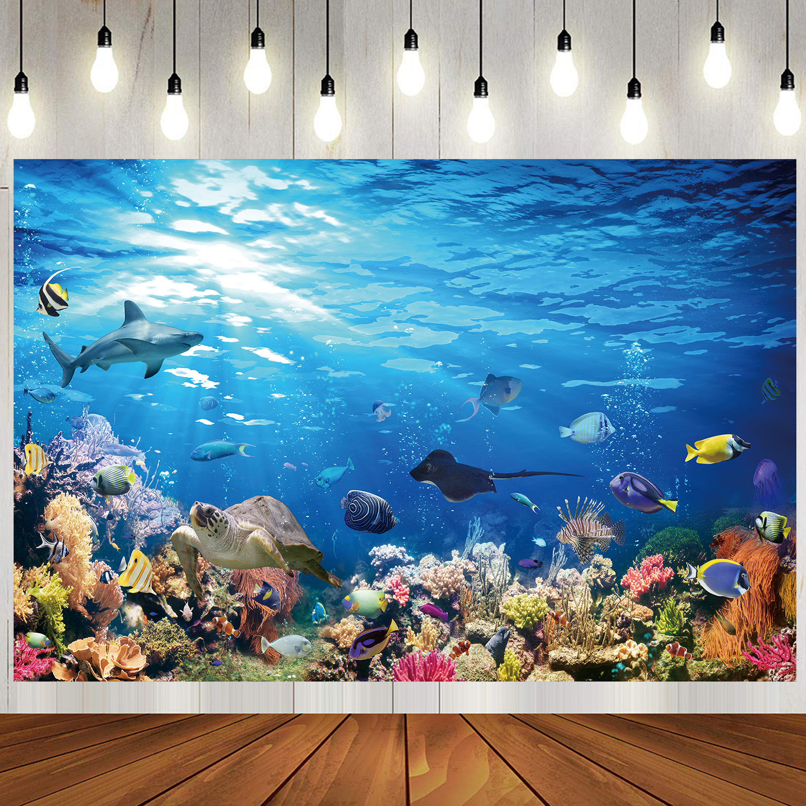 国境を越えたtemu青い海底テーマ背景布装飾誕生日バナー祝日パーティーのバナー写真撮影の背景