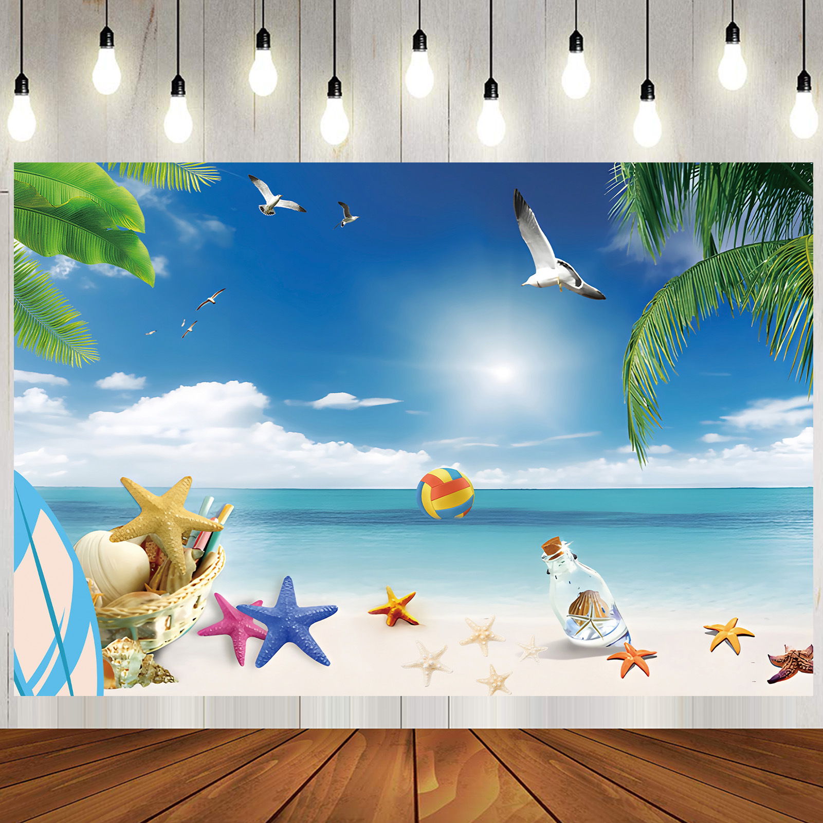 国境を越えたtemu海辺のビーチテーマ背景布装飾誕生日バナー祝日パーティーのバナー写真撮影背景