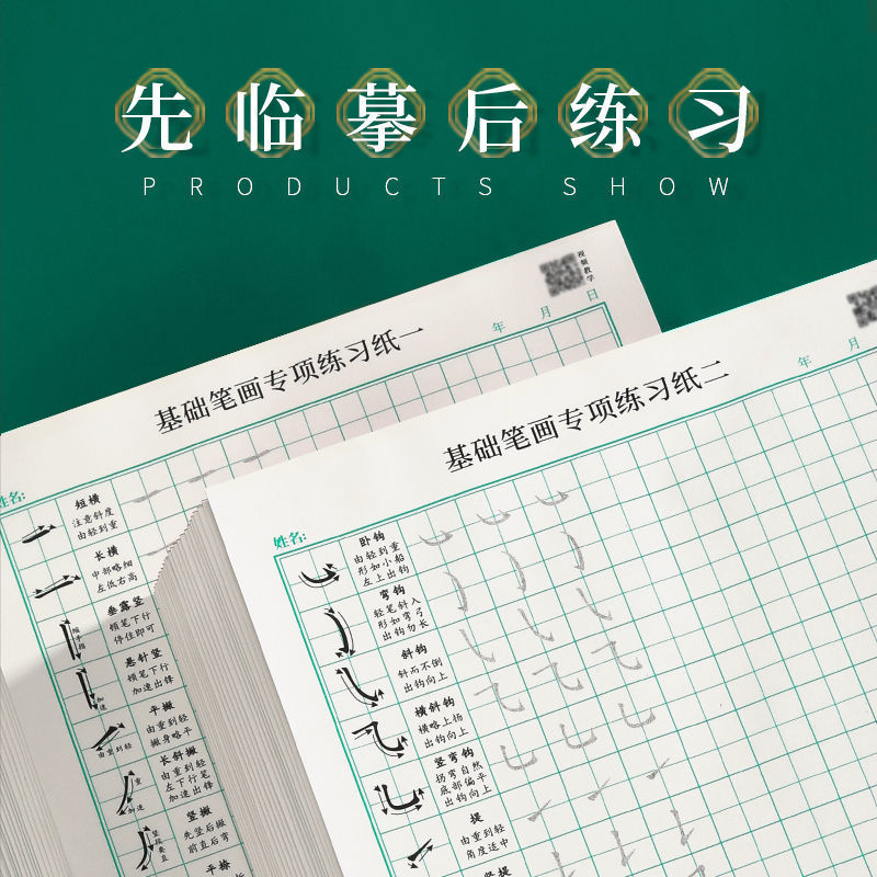 速成控筆訓練成人練字帖基礎筆画筆順偏側描赤小学生硬筆楷書書紙