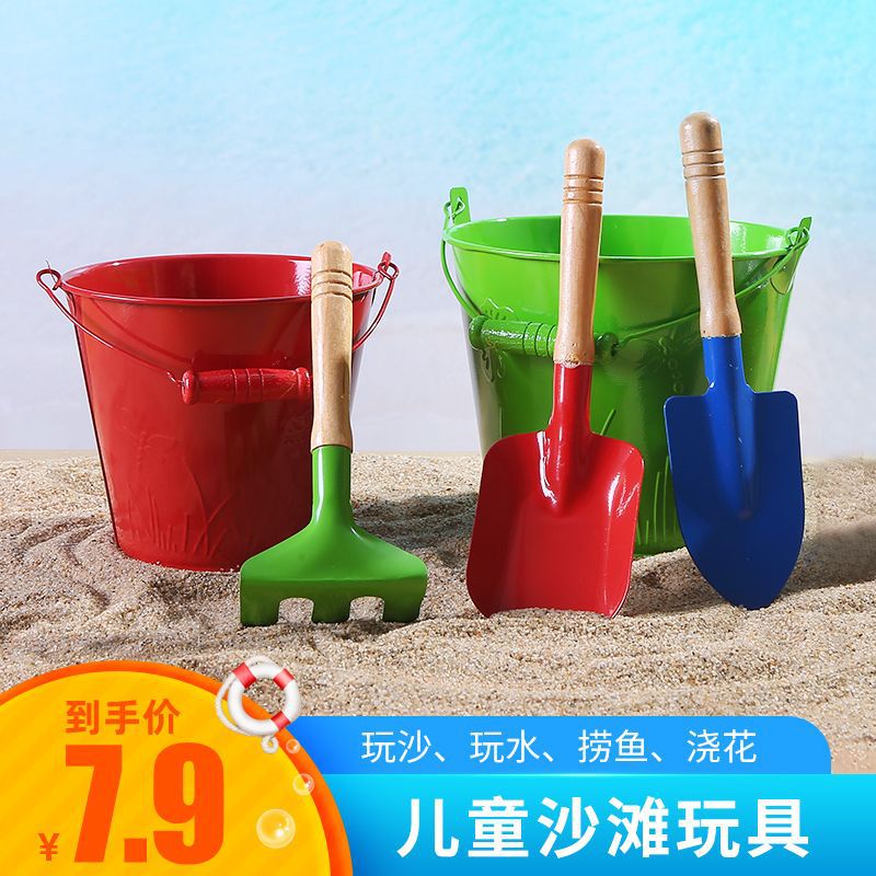 ビーチ玩具の子供セットセットは砂シャベルの道具を遊んで砂の先を掘るシャベルの鉄桶を厚くして屋外で土を掘る