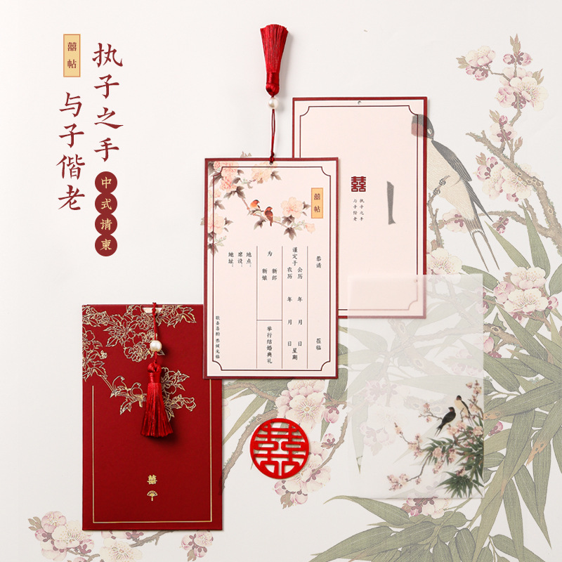喜縁招待状喜帖結婚式結婚披露宴招待状2023新型感中国風印刷招待状