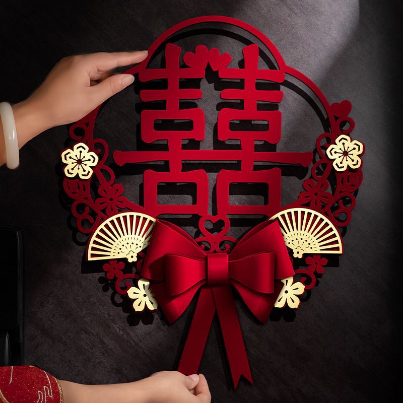 喜字貼り結婚結婚部屋の玄関に新しい部屋を飾る男性の女性の寝室のドアには国境を越えたものが飾られている