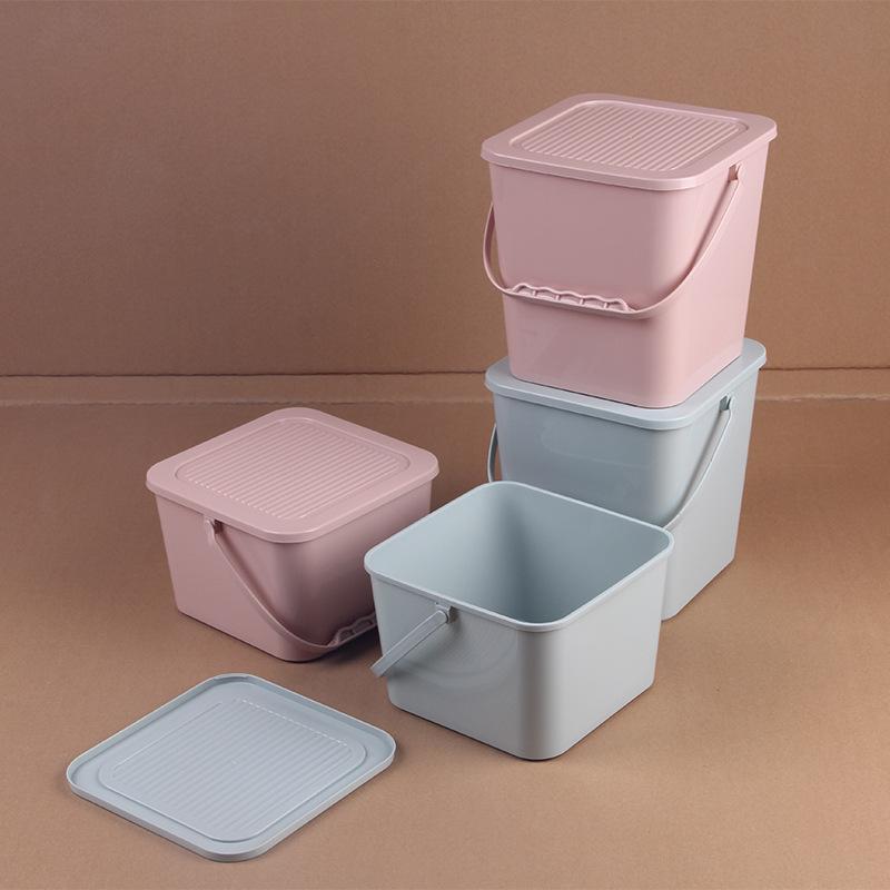 新型の四角形の蓋付きのプラスチックの小さい桶は長方形の小さい方の桶の収納桶を持って絵のバケツの食品の桶を描きます。