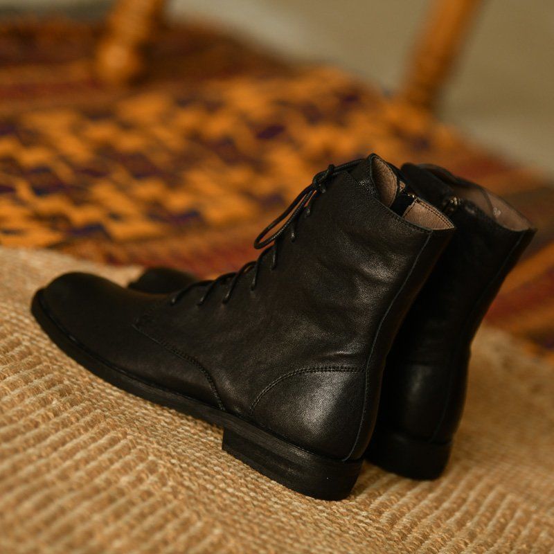 ショートブーツの女性モデルは本当に柔らかい皮の平底の女性2023の新型のストラップの英倫風のマーティンブーツの女性靴の冬の裸の靴です。