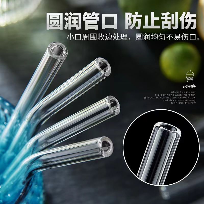 ガラスストロー非使い捨て透明耐熱カップ男女学生高ホウ素シリコン直曲メーカー卸売り独立駅