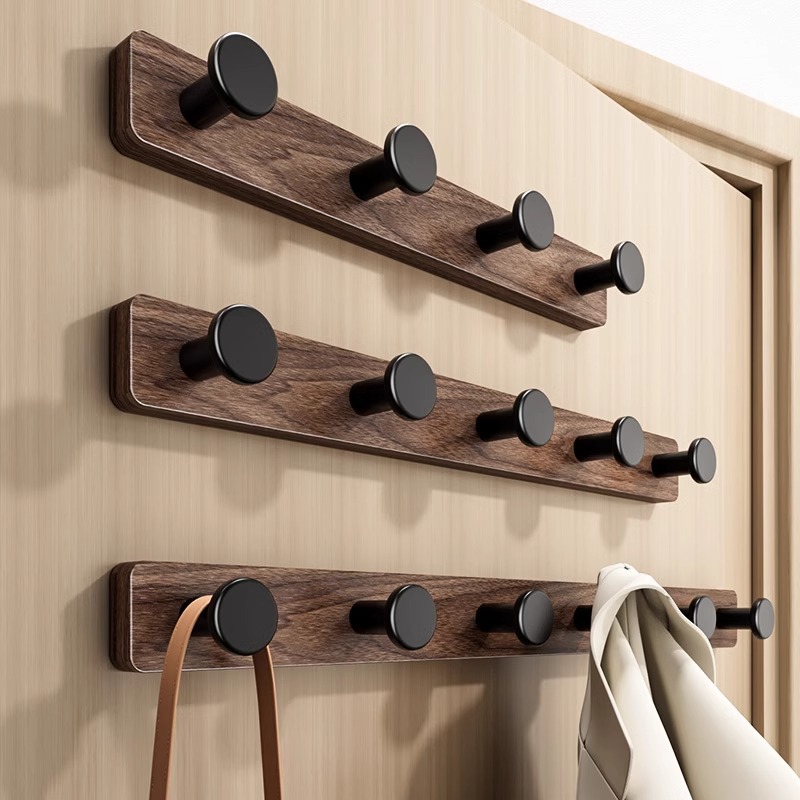 胡桃木フック試着室は穴を開けないでドアに入れた後、ハンガーの壁に玄関の服の帽子を掛けてフックをかける