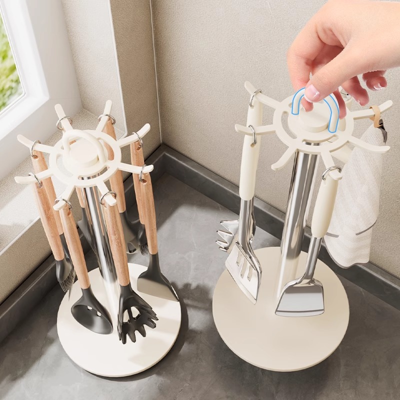 キッチンカウンタートップシャベルラック回転フックポットハンギングスプーンシャベルホルダースプーンキッチン用品収納ラック