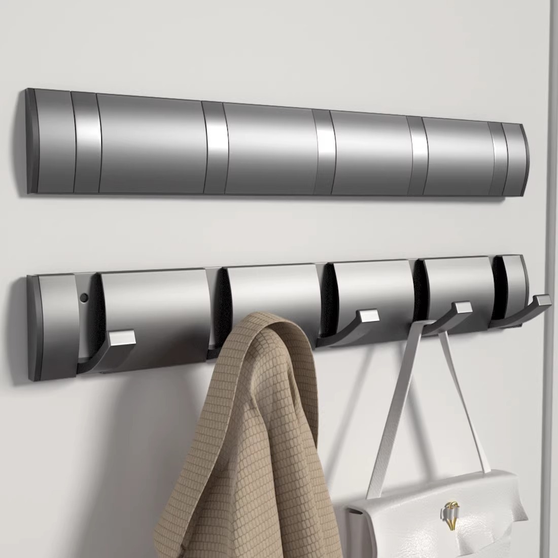 折り畳み式ステルスドアの後ろの服の帽子はトイレの穴を開けない銃の灰色のハンガーの試着室の玄関の壁のフックを掛けます。