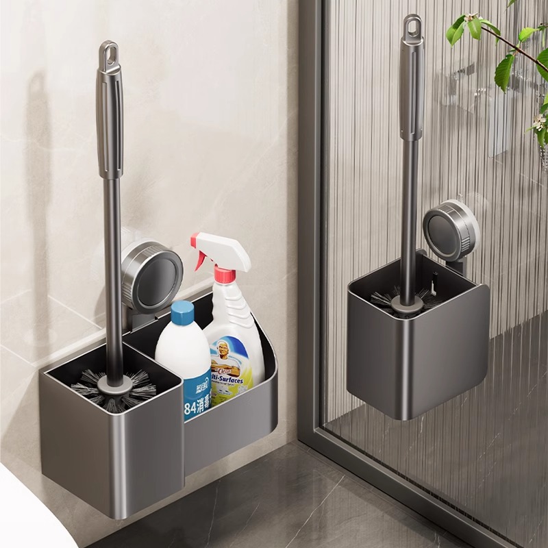 吸盤トイレブラシ収納ラック、穴あけ不要、壁掛け、家庭用死角なし、浴室トイレ、トイレ掃除用品
