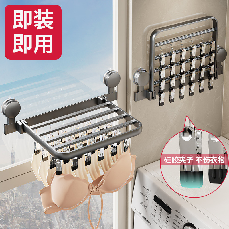 吸盤靴下干しラック家庭用折り畳み穴なし多機能日焼け下着多クリップベランダ干し神器