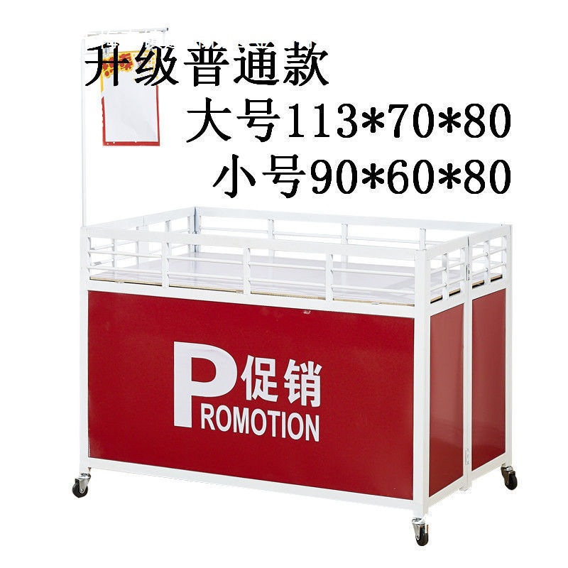 スーパーの販売促進車がトラックを振って販売促進台が展示棚の洋服店の花車棚を折ってトラックを販売する