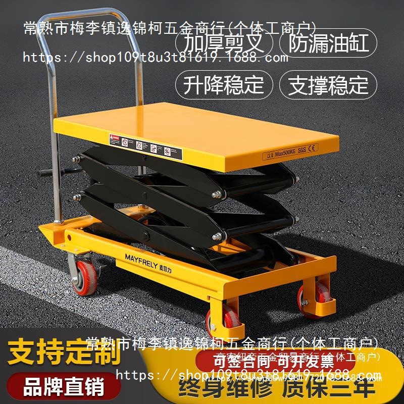 Mafeili 手動油圧電動プラットフォームカートフラット小型移動作業台トロリーシザーリフト卸売