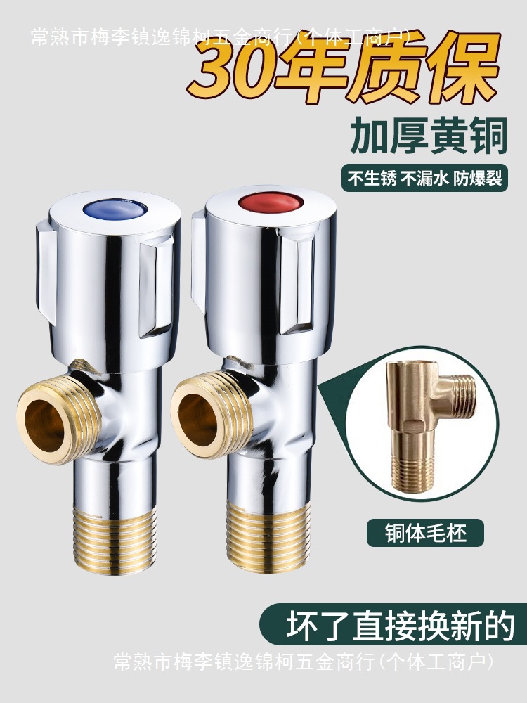 JMWRR九玫王全銅角弁厚手冷熱延長三角弁通用304ステンレス便器給湯器