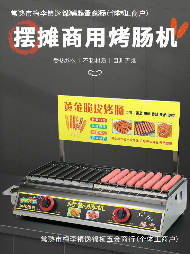 歯切れ焼き腸機商用夜市道端にガスを並べてデンプン腸を焼きます。