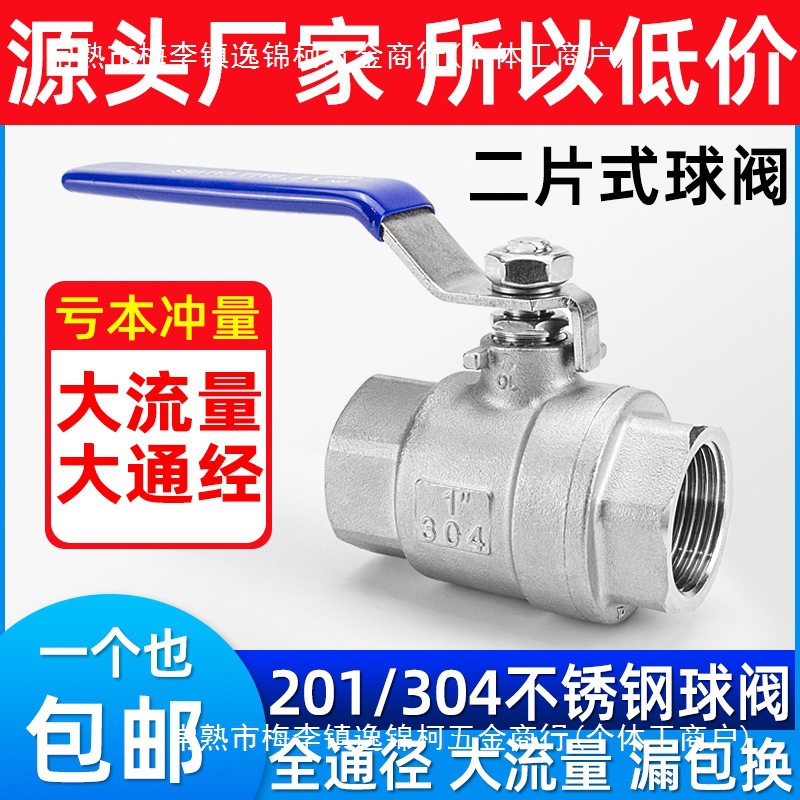 304ステンレスボールバルブ二枚式二枚雌ネジ内糸バックル水道管スイッチバルブ4分6分1インチ