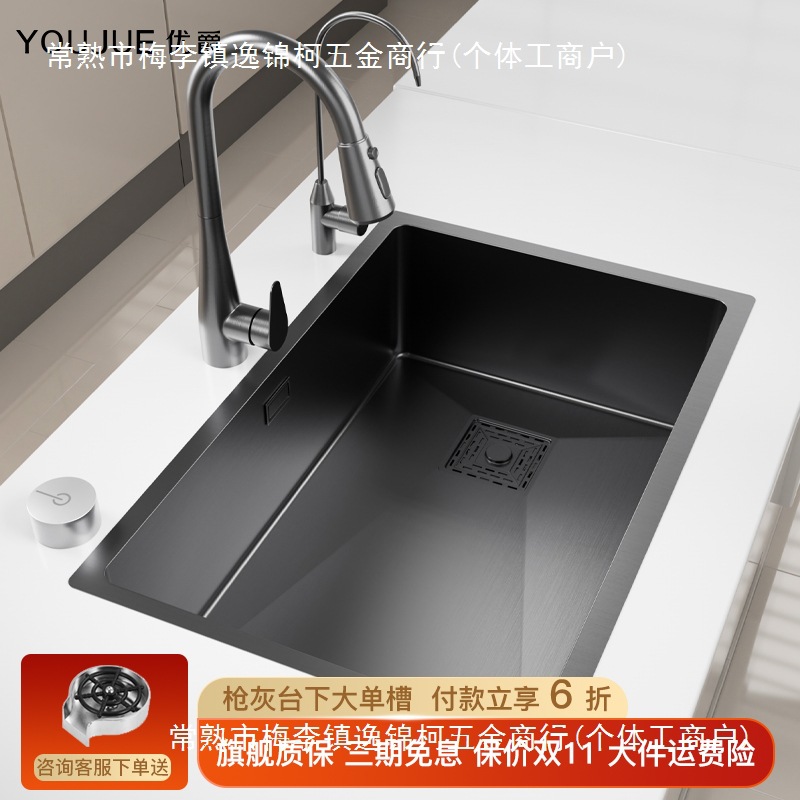 YOUJUE キッチンシンク ガンアッシュ ナノ 304 ステンレス鋼 アンダーカウンター洗面台 食器洗いシンク 家庭用大型シングルシンク