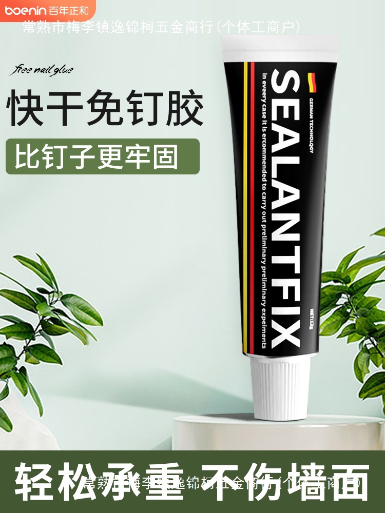 壁タイルに接着する釘不要の接着剤構造、家庭用パンチフリー防水防カビ白色シールガラス接着剤