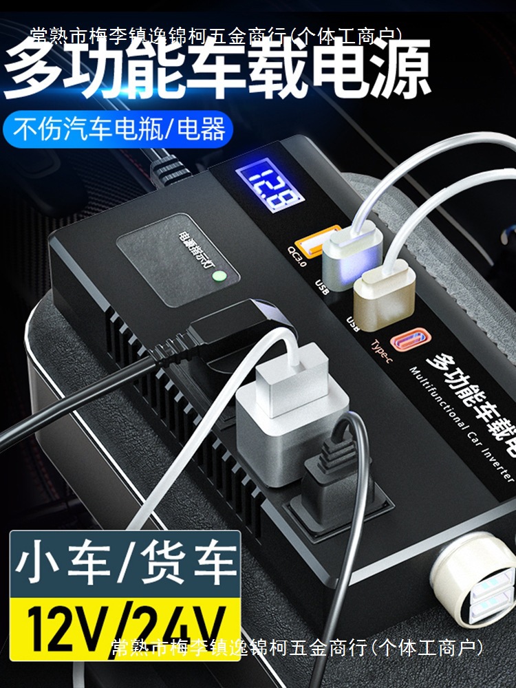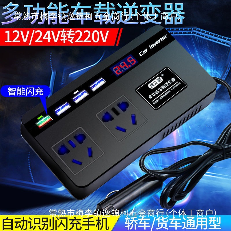 車載12v 24vから220vトラックの自動車電源変換変圧器USB急速充電フラッシュ充電デジタル表示