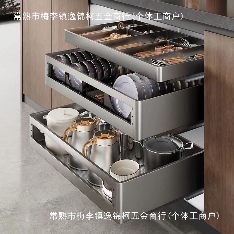 多層バスケットキッチン二重食器棚304ステンレス引き出し式内蔵食器棚収納皿バスケットその他
