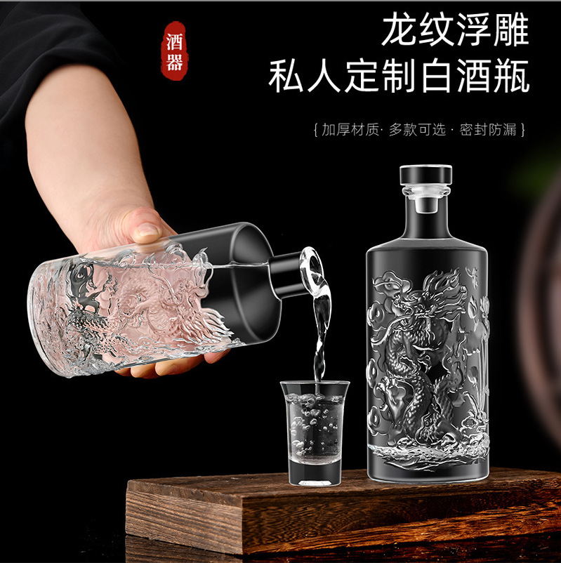 新龍紋レリーフ白酒瓶透明ガラス酒瓶500mlシール1斤入り印字ロゴ空瓶