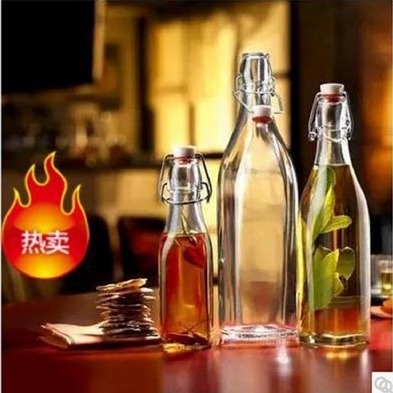 楽ボタンガラス瓶透明円形角型クリップガラス瓶ジュース酵素酒瓶自醸造白酒瓶空瓶
