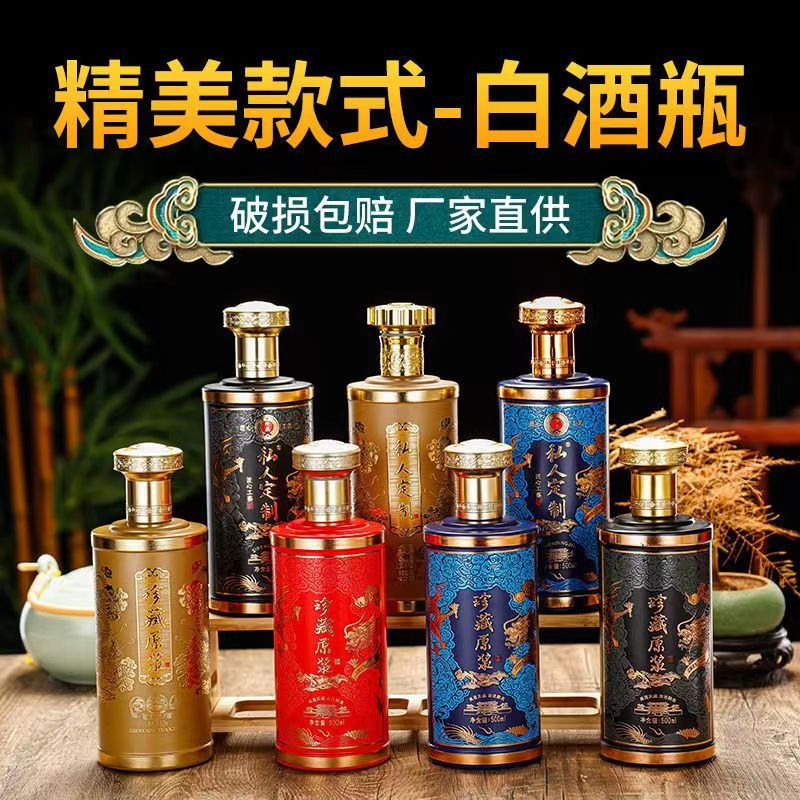 メーカー卸売り白酒瓶塗装焼付ガラス酒瓶500ml入宴席箔押し瓶空瓶セット