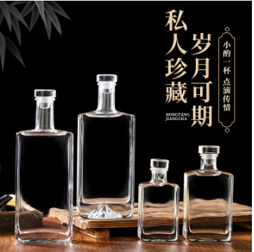 卸売り角形500ml晶白料観雲酒瓶透明ガラス蓋果酒瓶白酒空瓶礼箱セット