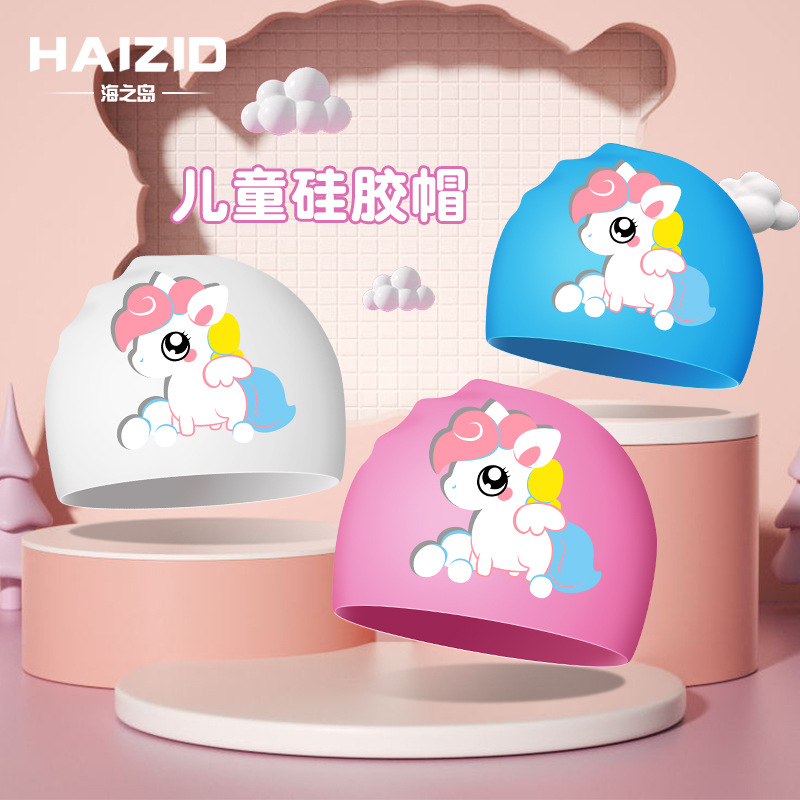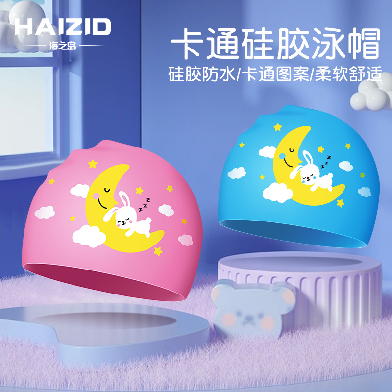 子供用水泳帽シリコンゴム防水無首男女子供通用高弾アニメ水泳帽スポット卸売り