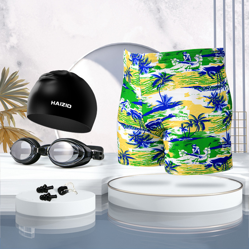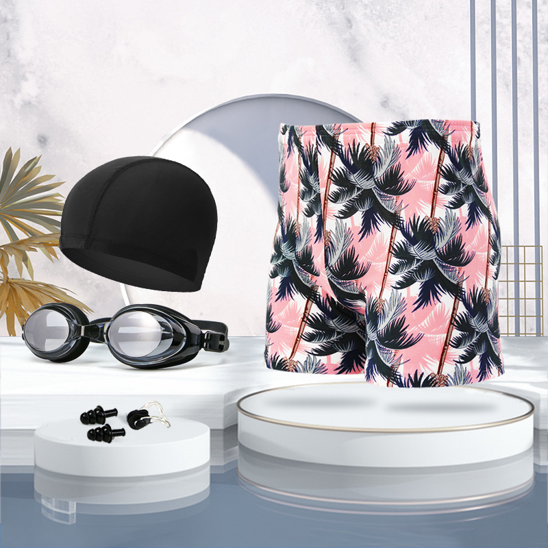 男性水泳パンツ温泉平角ゆるい水着大サイズファッションヤシの木模様成人水泳パンツセット卸売り