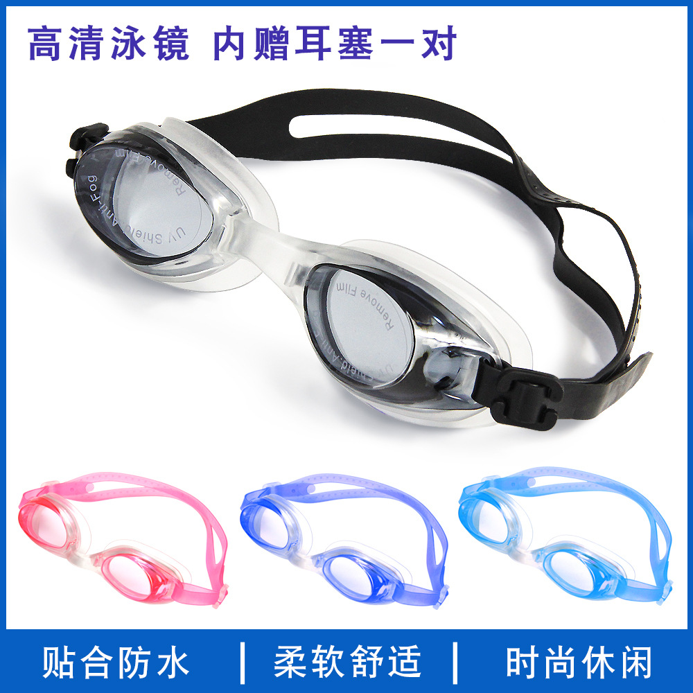 箱入り水泳鏡高精細防水防霧水泳眼鏡子供用小枠電気メッキ鏡耳栓付き平光水泳鏡卸売り