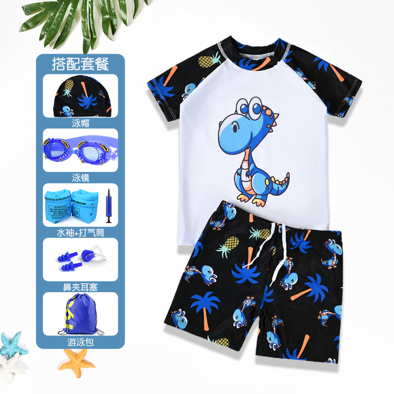 子供の水着の男の子の分体の水着の水泳のズボンのスーツの中で大きい子供の半袖の日焼け止めの水泳のスーツは卸売りを装備します。