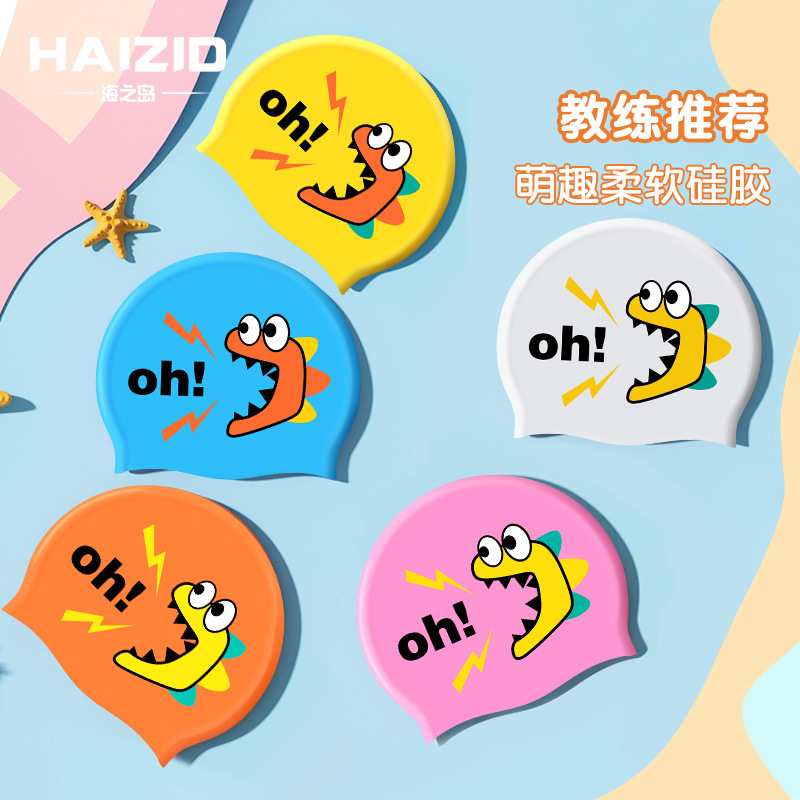 子供の水泳帽男の子の女の子のかわいい漫画のシリコンゴムの防水は首を絞めない学生の耳保護水泳帽の卸売りに合います。