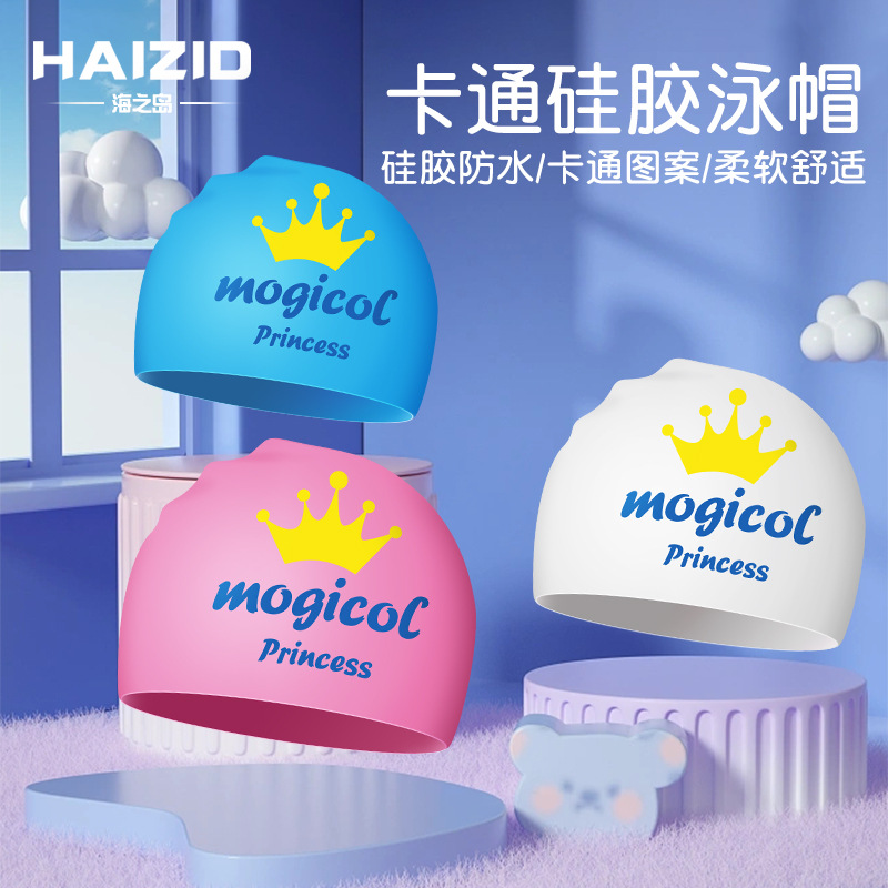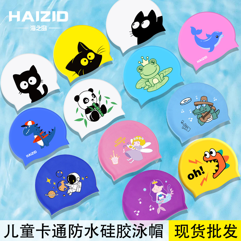子供用水泳帽防水耳保護漫画シリコン帽子長髪日焼け止め高弾性首なし水泳帽スポット卸売り