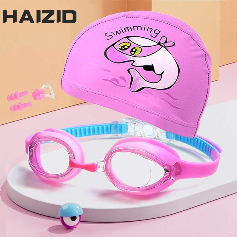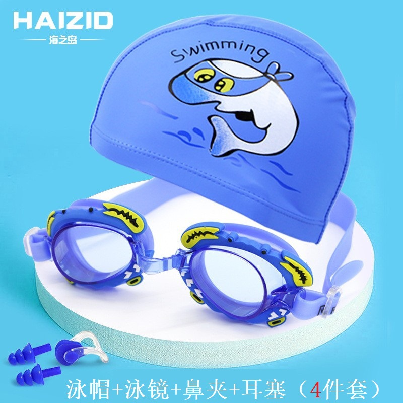 高清アニメ水泳鏡セット水泳帽水泳耳栓男女児童水泳眼鏡防水防霧児童水泳鏡