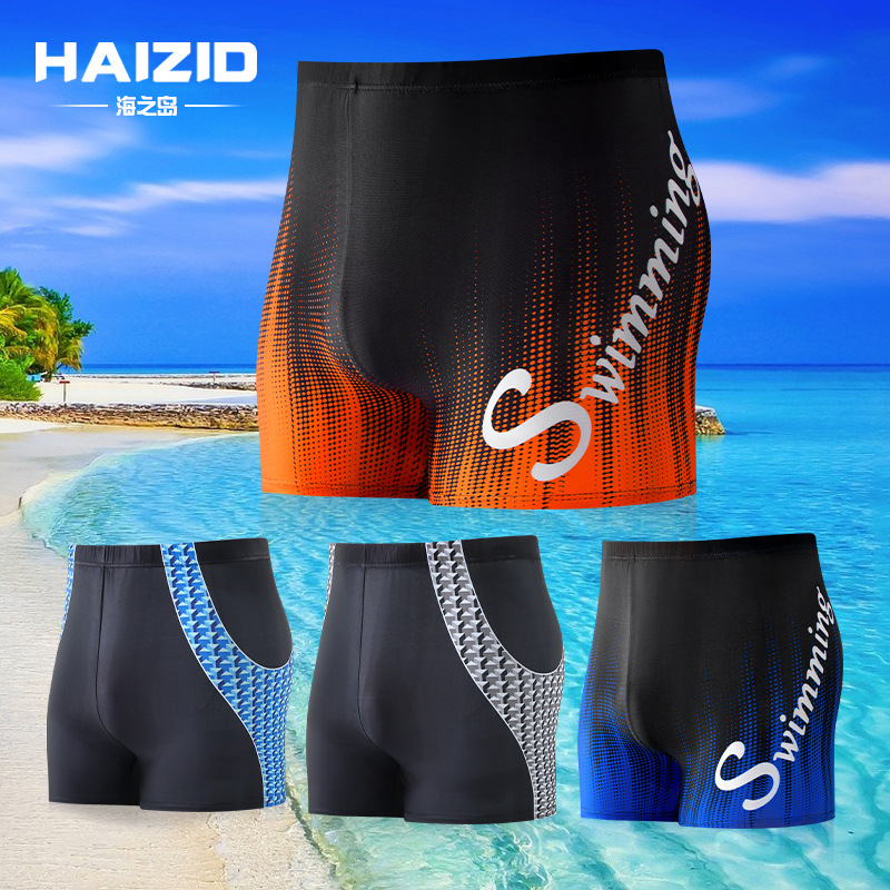 新型男性水泳パンツ卸売り温泉平角ゆるい保守水着大サイズファッションプリント成人水泳パンツ