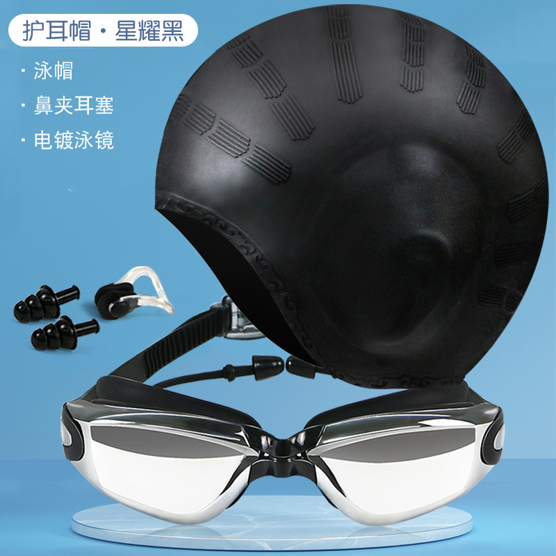 水泳帽の女性が大型の防水を加えて、長い髪の女性が快適なシリコン耳保護成人男性水泳帽セット