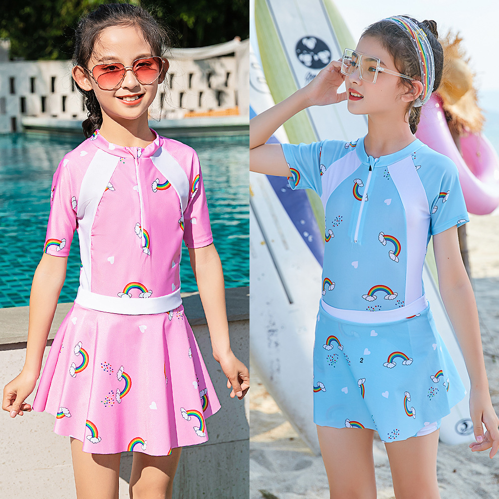 女の子用ワンピース水着 半袖 ビーチ 日焼け防止 2025年新作 水着 温泉 水着 メーカー直販