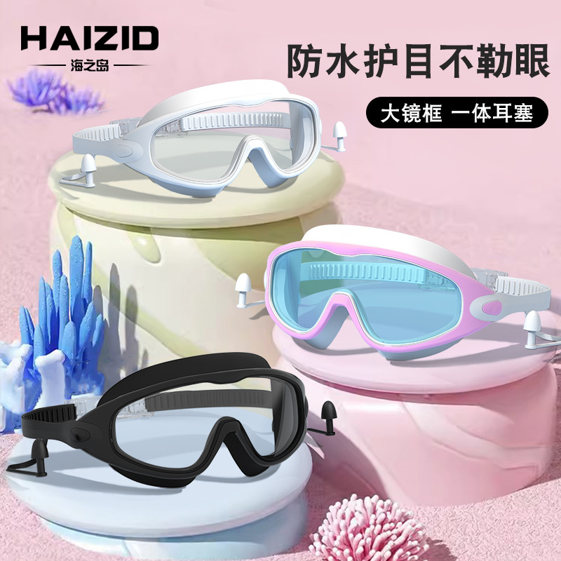 ゴーグルの子供の水泳の鏡の防水の高清の潜水の鏡の男の子の女の子の専門の防霧の大きい枠の連体の耳栓の水泳の鏡