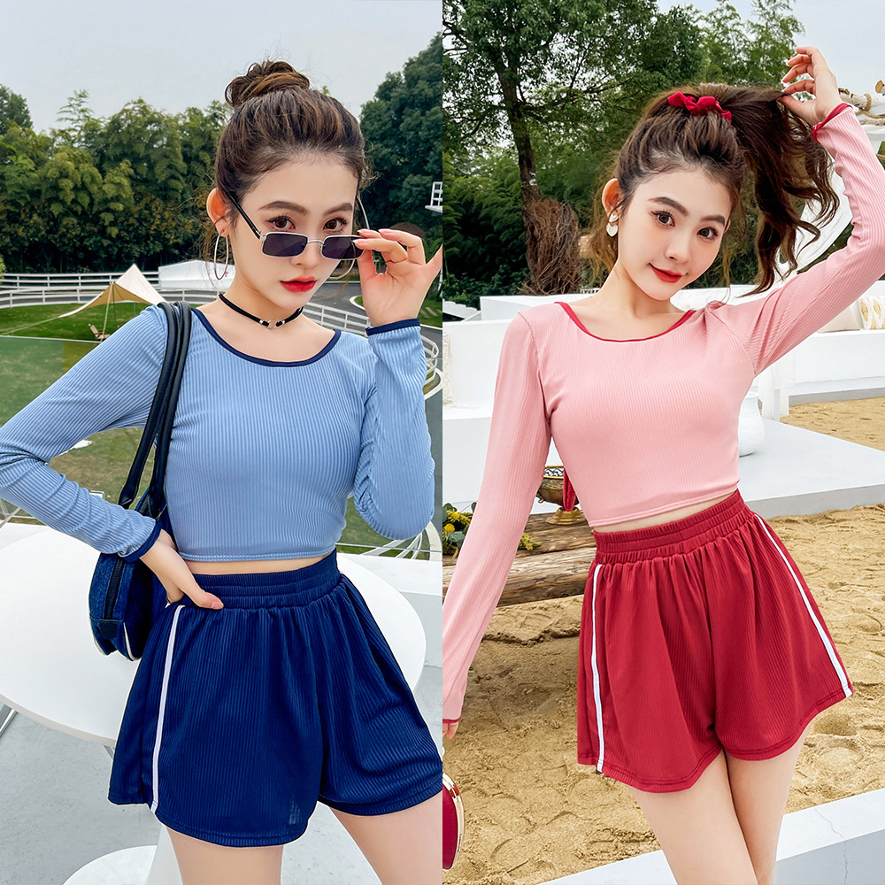 レディース水着連体保守運動長袖水着温泉海辺休暇日焼け止め水着スポット卸売り