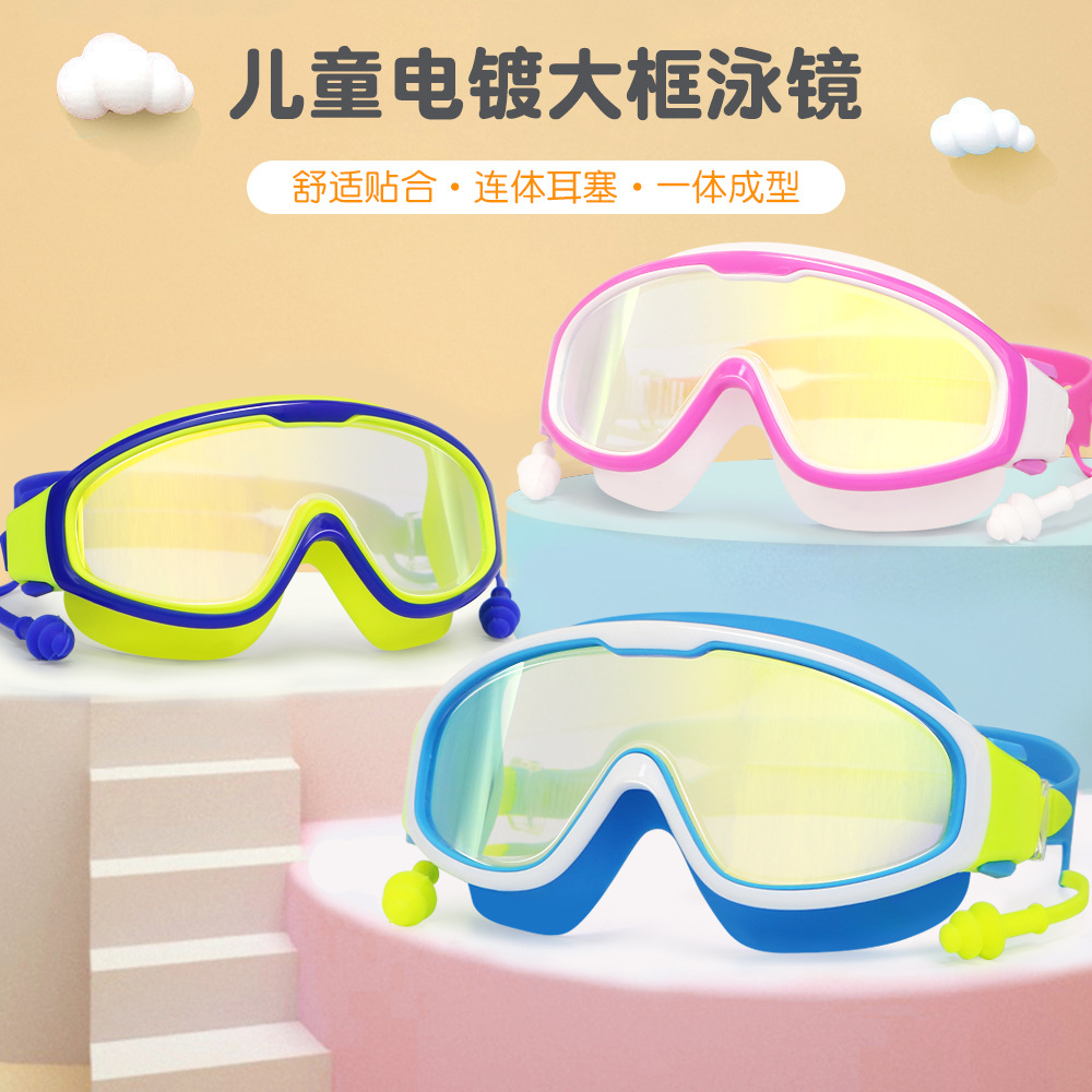 子供用の水泳鏡の連体耳栓の大きい枠のゴーグルの男女の子供の通用の水泳鏡の高清の透明な防水の防曇の水泳鏡