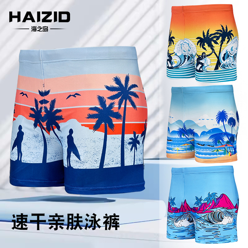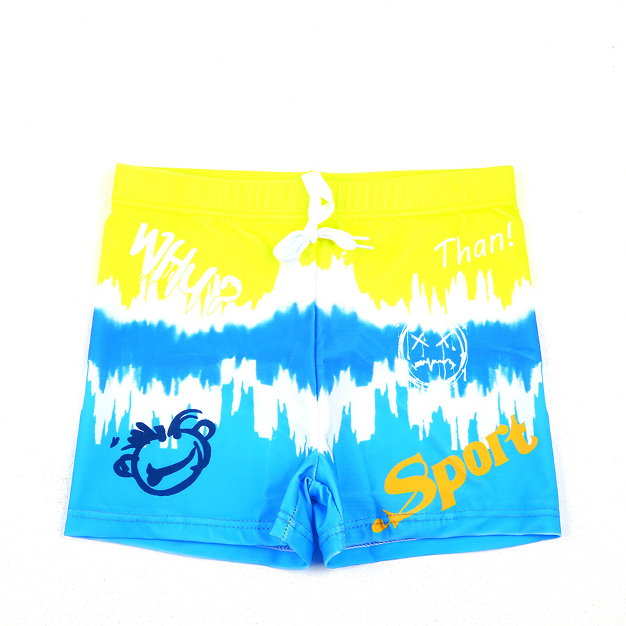 子供の水泳のズボンの中の大きい子供の速乾のポリエステルの生地の通気性の平角のズボンの温泉の休暇のプリントの水泳のズボンの現物の卸売り