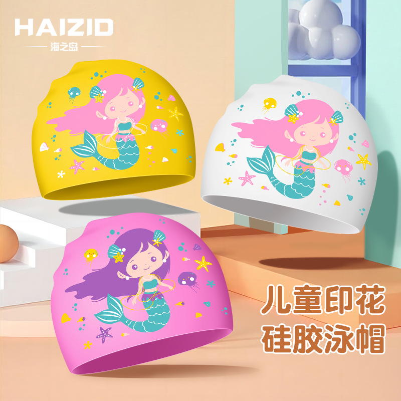 子供用水泳帽耳保護防水首を絞めないシリコン長髪快適な女の子男の子漫画赤ちゃん水泳帽卸売り